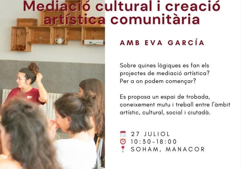 Taller amb @comuart_bcn a Mallorca! Dissabte 27 juliol 2024 a Soham (Manacor @soham.mallorca ) per a la Jornada Formativa amb Eva García. Taller de mediació cultural i creació artística comunitària.