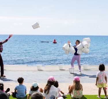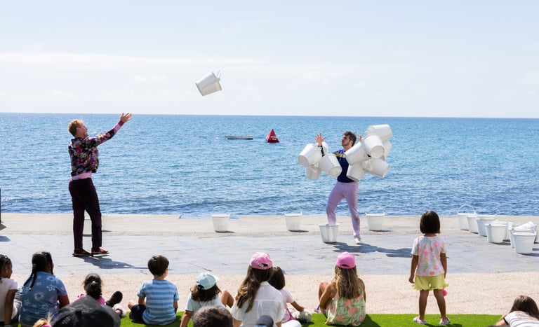 Un solo amb un punt desastrós. Teatre de carrer i teatre físic es reuneixen en un espectacle on el somni d’un comediant orgullós es converteix en un malson a mesura que els elements i el públic s’involucren, portant-lo de dalt a baix en 35 minuts. Envoltat de desenes de poals, els problemes creixen quan s’adona que la gravetat sempre guanya, i que, quan menys ho desitges, l’aigua cau.